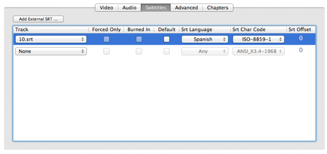 HandBrake es un programa para conversión de formatos de vídeo multiplataforma, acepta muchos formatos de entrada y tiene muchas posibilidades de configuración de salida, entre ellas la posibilidad de añadir subtitulos externos. Podeis descargarlo de forma gratuita desde su página web: HandBrake.fr